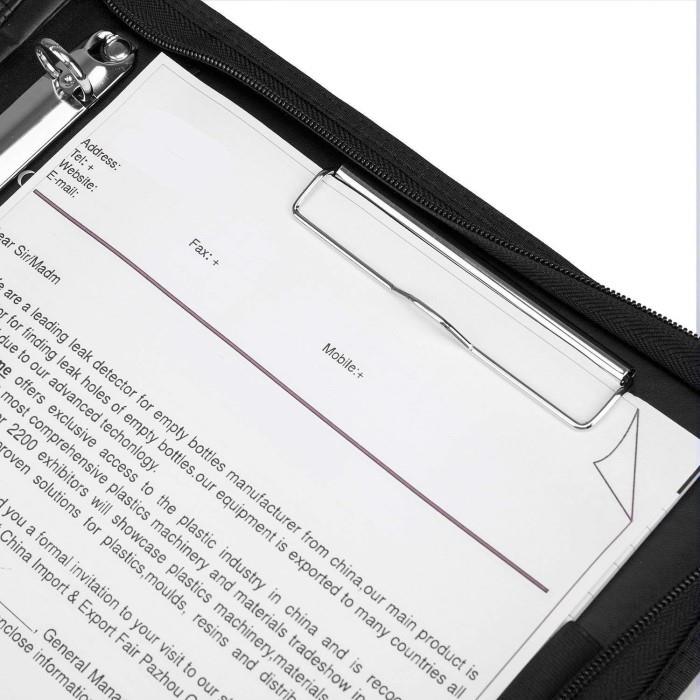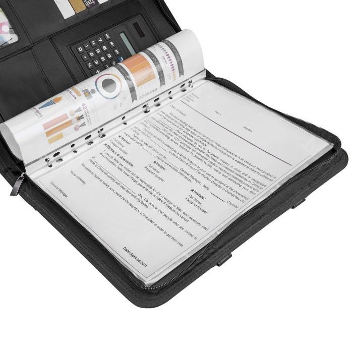 Etter at du har lastet alt inn i sine store lommer og spor, holder denne porteføljemappen seg flat og vil ikke løsne seg, og du kan bære den lett med sine 2 FOLD-OUT HANDLES. Så du kan alltid bli godt forberedt på presentasjoner, klientmøter, intervjuer og konferanser.