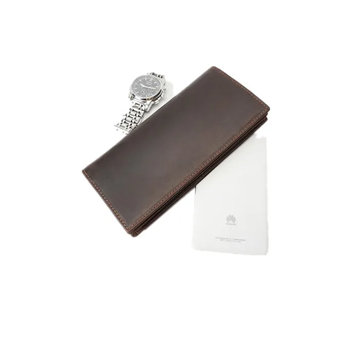 Denne lange mannen lommeboken er laget av ekte skinn, og kan også tilpasses i henhold til kundens krav. Den kan holde penger, mynt, kredittkort, foto og SIM-kort.